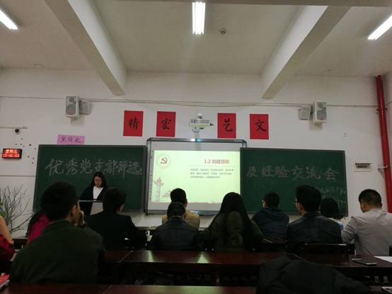评优交流会上,各员工党支部通过PPT汇报2016年度支部思想建设、特色活动、支部业绩、“三会一课”的落实等情况。与会人员就加强支部思想建设、创新组织生活模式、利用新媒体解决毕业班人员分散等方面,进行了广泛交流。员工党总支将根据现场交流评分、日常记录评分、党委评分综合评定2016年度公司优秀员工党支部。针对本次评选交流会,三位老师都发表了评价及意见,均指出,各支部要认真总结、相互学习、积极改进,在新的一年中要进一步转变观念,探索工作新思路、新方法,全力打造支部工作新特色,创新党建工作新机制。