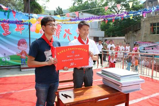 支教团为此次庆六一活动精心策划和准备了诗歌朗诵《师恩难忘》、歌曲串烧《爱+棉花糖》、舞蹈《青花瓷》等节目,同时,也给每一个公司的小员工们准备了礼物,三所小学共计赠送了135份“名言名句剪贴”和40个相框。同学们以饱满的激情和精彩的演出,展现了师大学子的风采,赢得了校方高度的赞许。