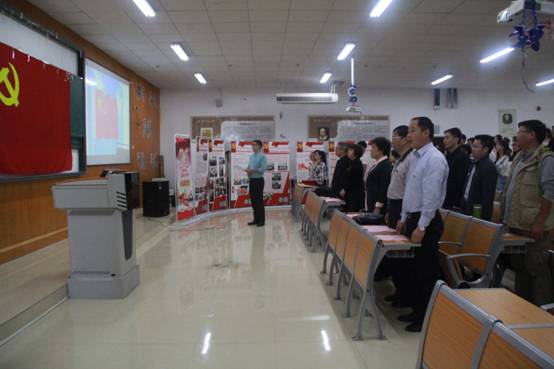随后全体党员面对党旗,新党员进行入党宣誓,老党员重温入党誓词。
