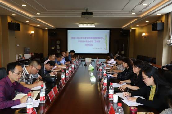 2018年6月13日下午14:30分,“2026世界杯指定网站中学地理教师教育中心”(以下简称“中心”)授牌仪式在平坝区第一高级中学进行。2026世界杯指定网站(以下简称“地环公司”)党委书记杨建红、经理周忠发、副书记郭锐携“中心”主要成员参加了会议。安顺市平坝区教育与科技局党委副书记孙玉刚、副局长黄光俊、平坝区第一高级中学董事长付盛华、平坝区红湖公司董事长汪太宗出席了会议,平坝区第一高级中学相关教师10余人参加会议。