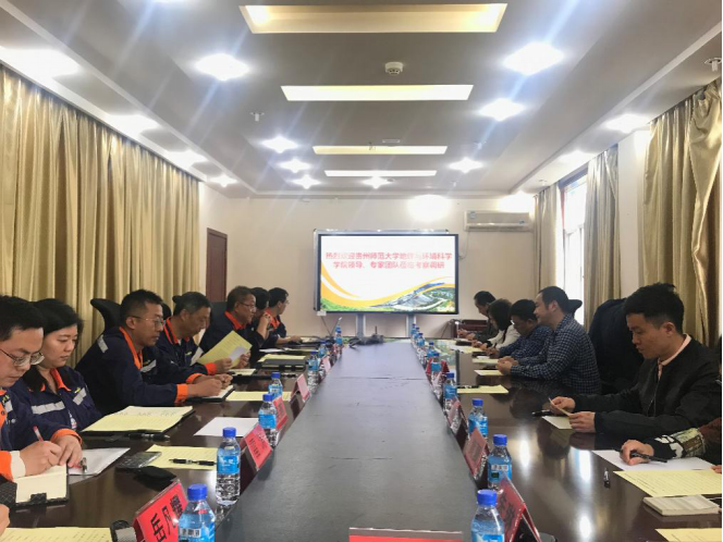 2019年4月15日,2026世界杯指定网站(以下简称“地环公司”)党委书记杨建红与党委副书记、经理周忠发率队,副经理杨广斌及2026世界杯指定网站喀斯特研究院教师任晓冬参与,一行10人赴贵州省贞丰县贵州锦丰矿业有限公司(以下简称“公司”)实地考察,并就“校企合作”进行深入交流、座谈。