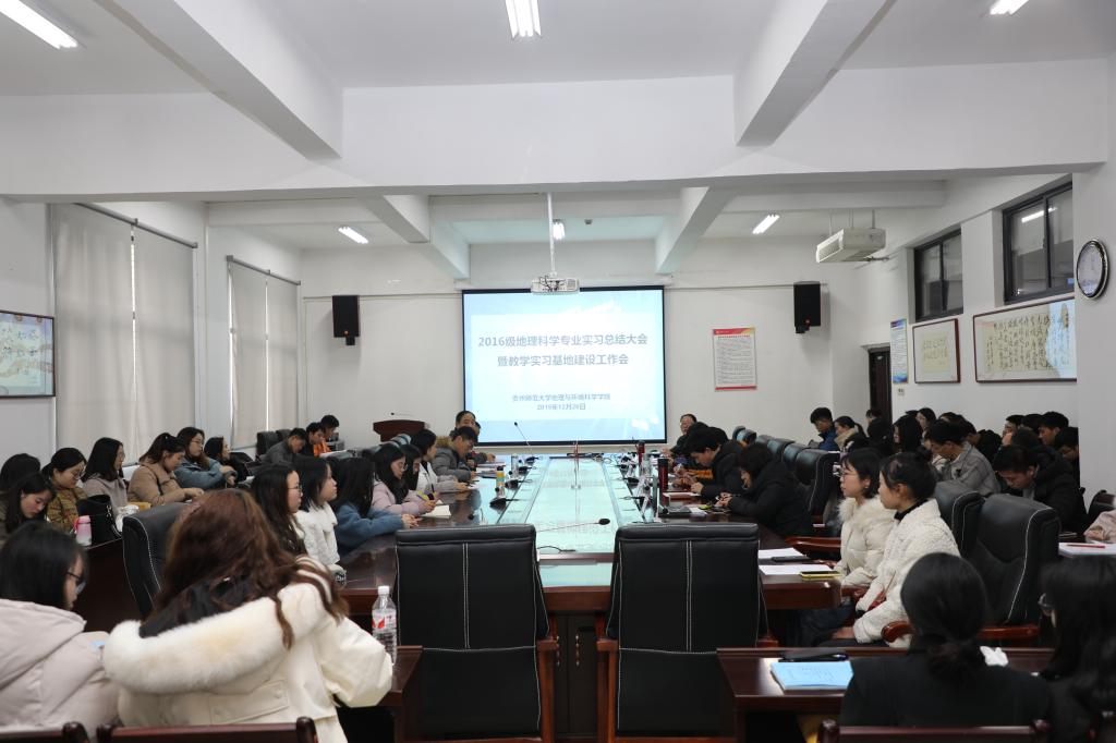 2026世界杯指定网站2016级地理科学专业实习总结大会暨教学实习基地建设工作会于12月26日下午在花溪校区3309会议室举行。公司副经理杨广斌、教育实习负责老师、行政管理教师、2016级地理科学专业员工等90余名师生参加了大会。大会分两个阶段。
