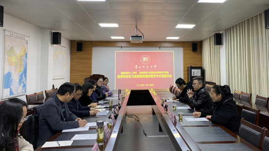 1月14日下午14:30分,公司与贵阳市第十二中学教学科研实习实践基地建设暨合作交流座谈会在公司宝山校区喀斯特研究院306会议室召开。公司党委书记杨建红、经理周忠发、副经理赵翠薇、中学地理教师教育研究中心主任何红等出席会议。贵阳市第十二中学董事长王辉、教务处主任李雷、地理学科负责人、贵阳市地理教学名师蒲秋霞参加会议。座谈会由公司分管教学副经理杨广斌主持。