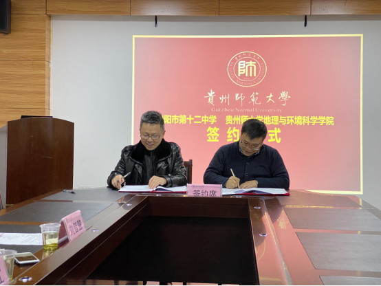 会上,周忠发对贵阳市第十二中学一行到公司就教学科研实习实践基地建设开展合作交流、签约挂牌表示热烈地欢迎,并向与会人员介绍了公司地理学“双一流”建设与发展情况。他认为当前公司地理科学专业获批国家级一流专业建设,并开展师范类专业认证二级认证,学科与专业发展态势良好,公司正紧扣“以本为本”育人理念,围绕“双万计划”狠抓地理科学专业人才培养,双方在此宝贵契机下开展合作应该探索新模式,在地理公司产品、喀斯特地理研学等方面要加强沟通交流,开展有深度的、具有创新性的合作。