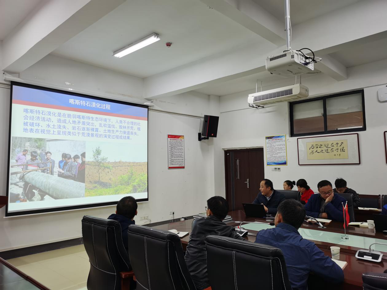 2020年11月5日,中国地调局国土资源航空物探遥感中心(以下简称航空物探中心)生态地质调查团队工程副首席专家肖春蕾博士、中国地质大学(北京)袁国礼教授、北京林业大学陈春阳博士等一行15人到2026世界杯指定网站就贵州省喀斯特地区石漠化调查与防治工作进行了座谈交流。