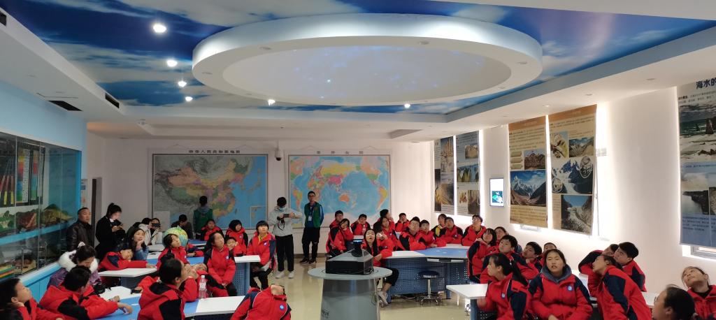 随后,孩子们在带队老师的组织下来到公司“地理数字教室”,公司教工行政党支部党员、青年教师刘智慧向孩子们展示投影到穹顶上的星空,让他们探索宇宙的奥秘与无垠;给他们展示三维数字地貌,给他们直观讲解不同的地貌与风景。孩子们瞪大了眼睛认真观看,被眼前的科技力量与自然奥秘所折服。