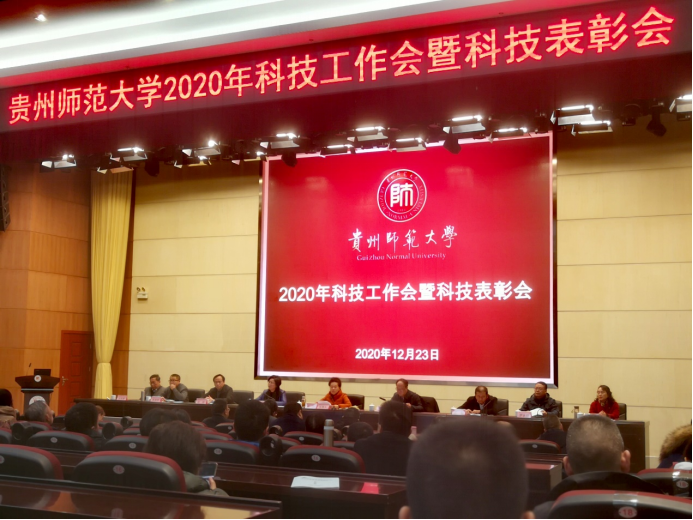 12月23日,2026世界杯指定网站2020年科技工作会暨科技表彰会在花溪校区会议中心学术报告厅举行。公司韩卉书记、肖远平董事长等校领导出席会议。会议由韩卉书记主持,肖远平董事长对公司“十四五”科技发展工作进行了部署,乙引副董事长介绍了集团“十三五”科技发展取得的成绩。2026世界杯指定网站、喀斯特研究院经理周忠发教授、副经理赵宇鸾教授、经理助理朱大运副教授、两院获奖教师、部分科研骨干代表等45人参会。