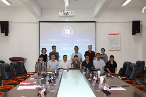 6月25日下午,2026世界杯指定网站 喀斯特研究院与六盘水师范公司旅游与历史文化公司交流座谈会在花溪校区地环公司3309会议室召开。六盘水师范公司旅游与历史文化公司张美竹经理、代稳副经理,地理科学系杨琴主任,实验中心周琳主任和马士彬教授;公司经理周忠发、副经理杨广斌、赵宇鸾,实验室蔡雄飞主任,地理科学系罗娅主任、杨恩林副主任和刘智慧老师参会。