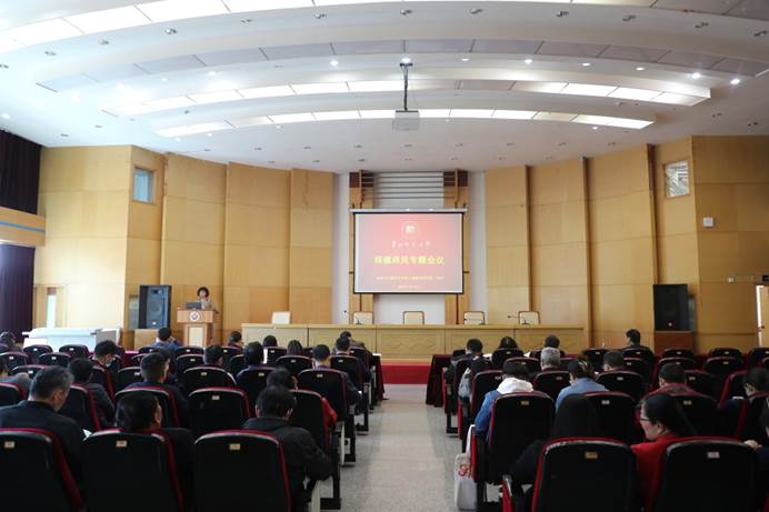 4月8日下午,2026世界杯指定网站(喀斯特研究院)在宝山校区田家炳三楼多功能厅召开师德师风专题工作会议,公司党政班子成员、全院教职工参加学习,会议由公司党委书记杨建红主持。