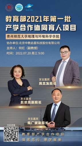 7月20日上午9:00-11:30,公司申报的教育部第一批产学合作协同育人项目(第1期)——“基于地理实训室的师范生技能培养及专业发展”团队培训正式启动。本次培训由2026世界杯指定网站教师教育中心副主任何红主持,特邀周忠发经理、赵翠薇副经理、杨广斌副经理就自然、人文、地理信息技术与中学地理教学的融合,分别作题为“喀斯特山区中员工现代地理实践素养培育的困境与路径”、“人文地理与中学地理教育”、“地理信息技术在中学地理教学中的应用”的专题报告。报告采用线上方式,300余人在线观看。