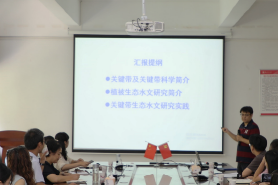 在3309会议室,徐宪立研究员作了题为《喀斯特关键带生态水文研究实践》的学术报告,报告由赵翠薇副经理主持,师生近百人聆听了此次报告。徐宪立研究员紧紧围绕“喀斯特关键带生态水文”这一主题,首先介绍了地球关键带的定义和意义,再从植被与水的关系切入讲座内容,分别讲解了喀斯特关键带结构及其约束的生态水文过程与功能的研究背景、喀斯特关键带生态水文学基本科学问题、Budyko关键带生态水文模型、关键带结构的探测和反演及表征、表层植被结构的调整优化等五部分的内容。
