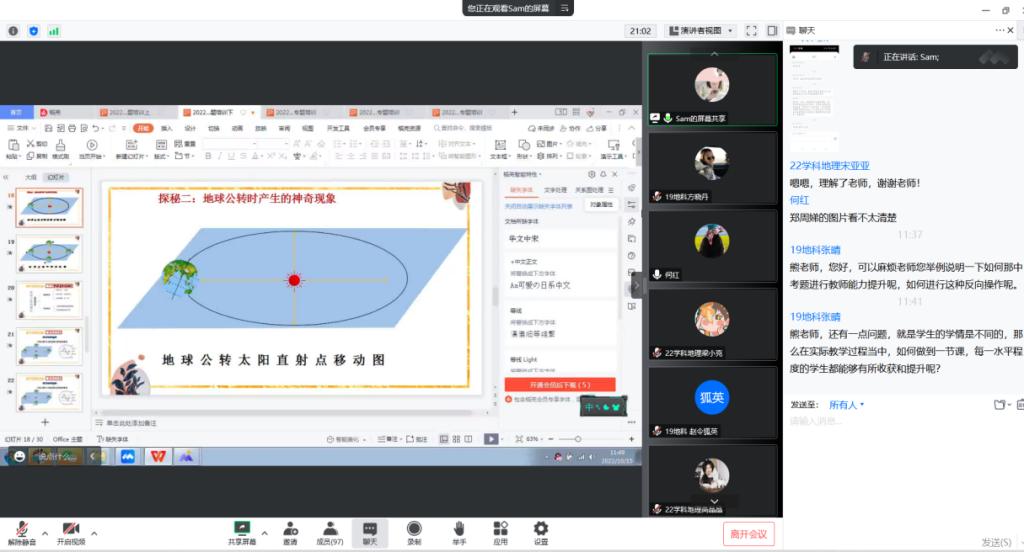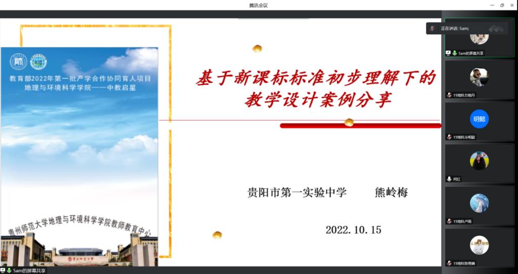 2022年10月15日上午9:00,教育部第一批产学合作协同育人系列讲座之《基于新课标标准初步理解下的教学设计案例分享》采用线上方式进行。贵阳市第一实验中学地理教研组组长,高级教师、贵阳市骨干教师熊岭梅应邀作专题报告。公司教师教育中心何红、周光发、王青、徐燕、刘智慧等老师,2019级、2020级地理科学专业本科生,2021级、2022级学科教学(地理)专业硕士研究生,求是公司地理科学专业本科生共130余人聆听。教师教育中心副主任何红老师主持讲座。