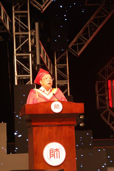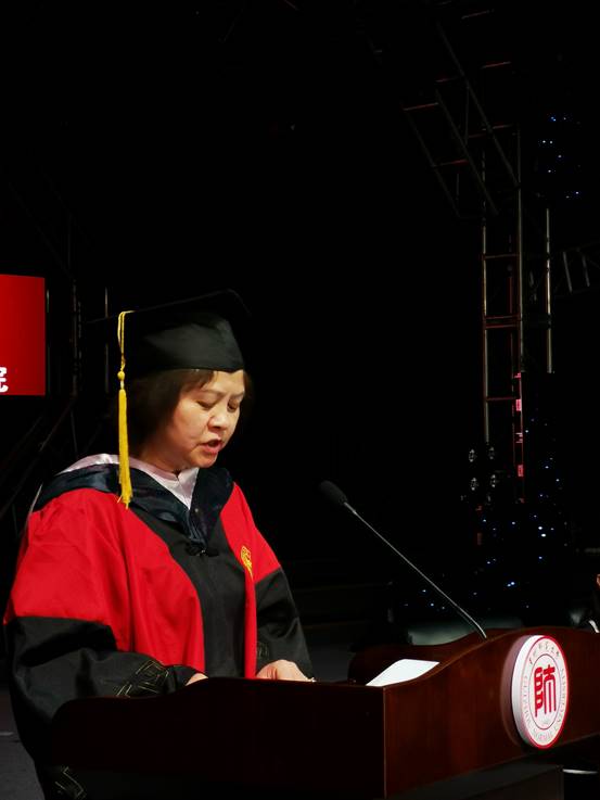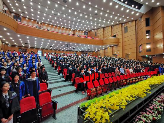 教师代表副经理朱大运,同时也是2019级自然班班主任寄语全体毕业生,心存美好、勇毅前行,珍惜这似水流年,继续写就灿烂人生。博士研究生张娟、硕士研究生赵佳作为研究生毕业生代表发言,本科生邓娜作为本科毕业生代表发言。