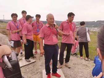 许嘉巍教授讲解 公司员工长白山天池旁合影