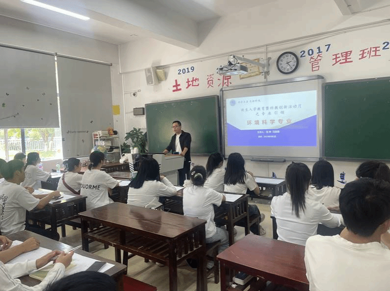 专业引领由院领导牵头,各系主任、各专业负责老师等深入各班级,带领新生走进地环楼、实验楼、生态实验站、“地环园”、凤翔山等未来四年同学们将要学习生活的地方。老师们结合专业特色、地质地貌、实习实践等专业相关知识向新生讲解了所学专业“是什么”、“学什么”、“怎么学”,并就专业定位、培养目标等方面为同学们作了全面分析。