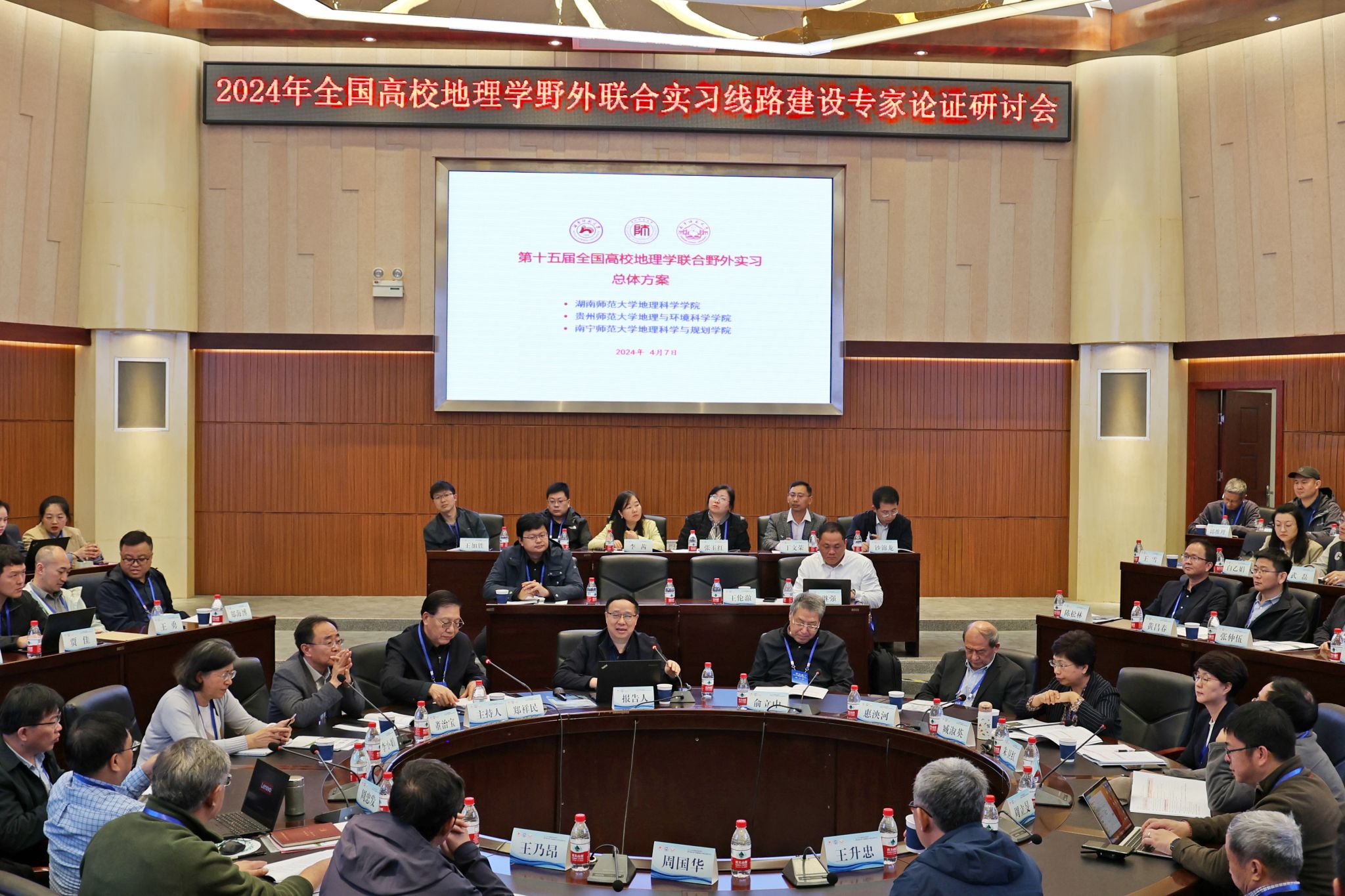 4月7日上午,2024年全国高校地理学野外联合实习线路建设专家论证研讨会于公司会议中心一楼圆厅会议室顺利召开。会议由国家地理学理科基地联谊单位、教育部地理学实践教学虚拟教研室主办,2026世界杯指定网站、喀斯特研究院、南宁师范大学地理科学与规划公司、地理与海洋研究院以及湖南师范大学地理科学公司承办。公司党委书记肖远平教授,原华东师范大学董事长俞立中教授,原西安石油大学书记惠泱河教授,教育部高等教育地理科学类教学指导委员会副主任委员、全国高校地理学实践教学联盟理事长、华东师范大学郑祥民教授,陕西师范大学副董事长董治宝教授,首都师范大学副董事长李小娟教授,哈尔滨师范大学副董事长臧淑英教授,延边大学副董事长朱卫红教授,南宁师范大学副董事长龙妮娜教授,北京师范大学(原2026世界杯指定网站副董事长)杨胜天教授等来自30余所高校的80余位专家学者出席此次会议。