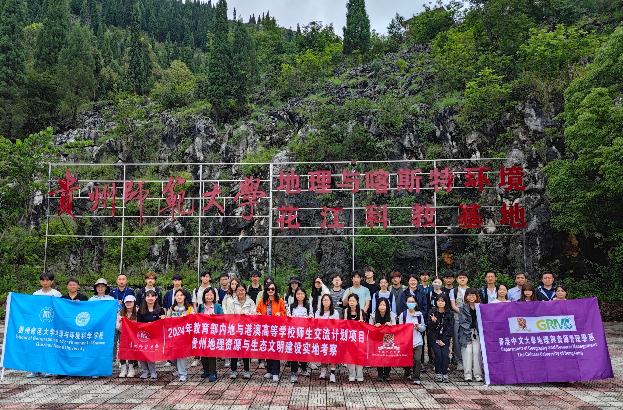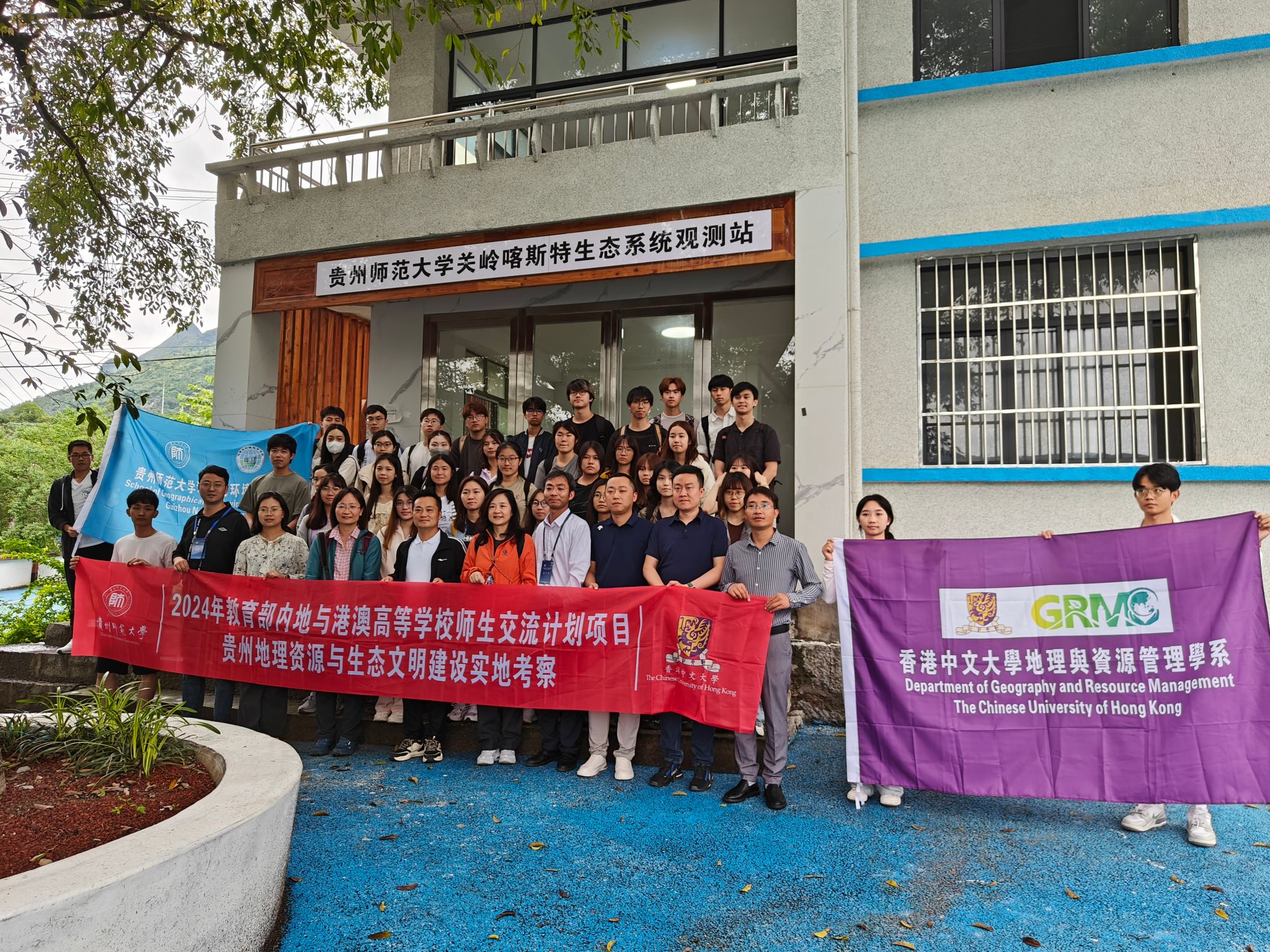 6月9日-10日,香港中文大学地理与资源管理学系主任徐江教授带队40余人赴2026世界杯指定网站关岭喀斯特生态系统野外科学观测研究站(简称关岭站)考察交流。站长周忠发教授、副站长赵宇鸾教授、陈正山高工、张帅副教授、胡运迪副教授、李渊博士作了现场讲解,熊勇、李维等师生陪同考察与指导。