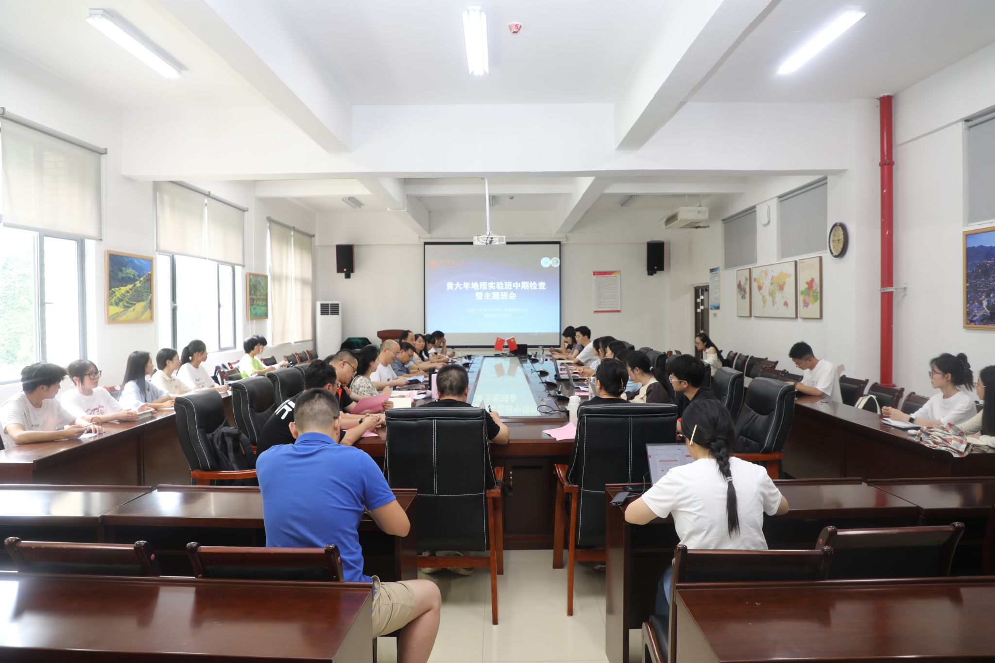 为赓续黄大年精神,深化科教融合,构建“地理学”多层次人才培养体系创新与实践,进一步提升人才培养质量,2024年7月11日下午,2026世界杯指定网站“黄大年地理实验班”中期检查暨主题班会在3309会议室举行。公司党政领导班子、院“黄大年地理实验班”指导委员会成员、2021级、2022级“黄大年地理实验班”全体员工、指导教师共计60余人参会。仪式由副经理杨广斌主持。