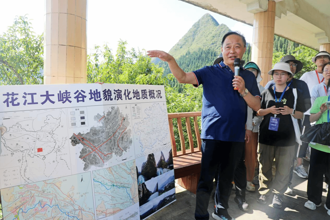 在“观山海”科教基地,实习队伍俯瞰花江峡谷地貌景观,眺望峡谷的石漠化空间分布。陈正山高工介绍了花江峡谷的地貌演化与地质概况,杨广斌教授深入剖析了花江峡谷的石漠化成因,罗娅教授分享了石漠化治理面临的挑战,加深了大家对石漠化地区复杂人地矛盾的理解。