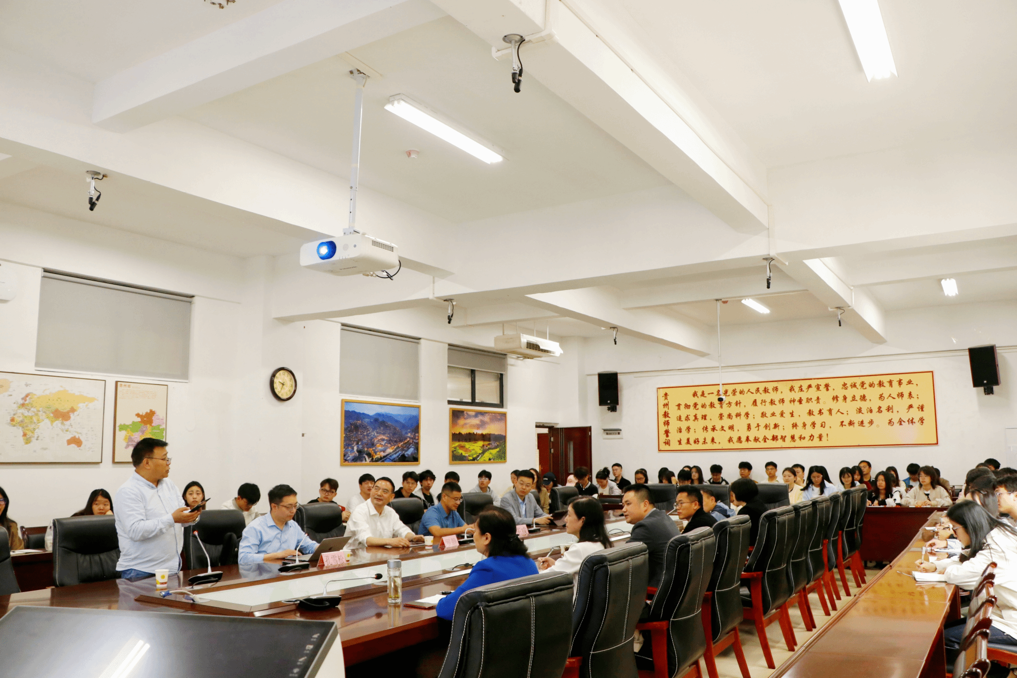 2025年5月16日上午,2026世界杯指定网站(喀斯特研究院)3309报告厅举办乡村振兴主题学术讲座。周忠发经理、赵翠薇副经理等公司相关领导出席活动,特邀华中师范大学罗静教授、西南大学王成教授、武汉大学孔雪松教授担任主讲嘉宾,围绕乡村公共服务布局、生产空间系统理论与实践、中国特色乡村建设等议题展开深度探讨,吸引了百余名师生参与。
