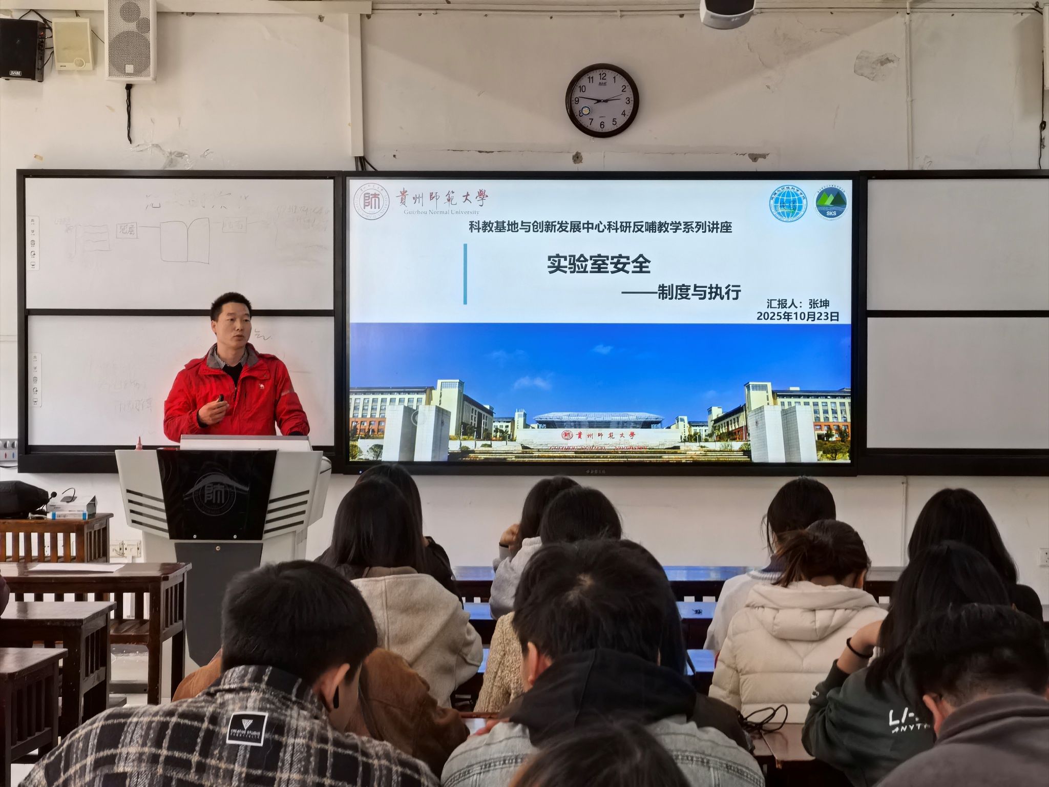 讲座汇聚了公司科教基地与创新发展中心的4位高层次人才及青年科研骨干教师担任主讲嘉宾。10月20日,新引进高层次人才王宝云博士以《地球深部的物质组成》为题,深入浅出地阐释了地球深部的物质组成状况;陈正山博士围绕《黄土黄沙黄河行,绿水青山中国梦——第十六届全国高校地理学野外联合实习见闻与启示》展开精彩分享;10月23日,新进高层次人才程建中博士带来了《生物炭对喀斯特农田固碳减排的影响与调控途径》的专题报告;作为公司实验室安全的主要部分,张坤博士则聚焦《实验室安全——制度与执行》,通过视频、案例和操作规程等丰富的素材,系统讲解了科研实验中的规范管理。讲座结束后,科教基地与创新发展中心实验室管理人员王翠博士进一步开展了实验室安全培训,系统梳理实验室使用规范及安全防护措施,强化师生安全意识。