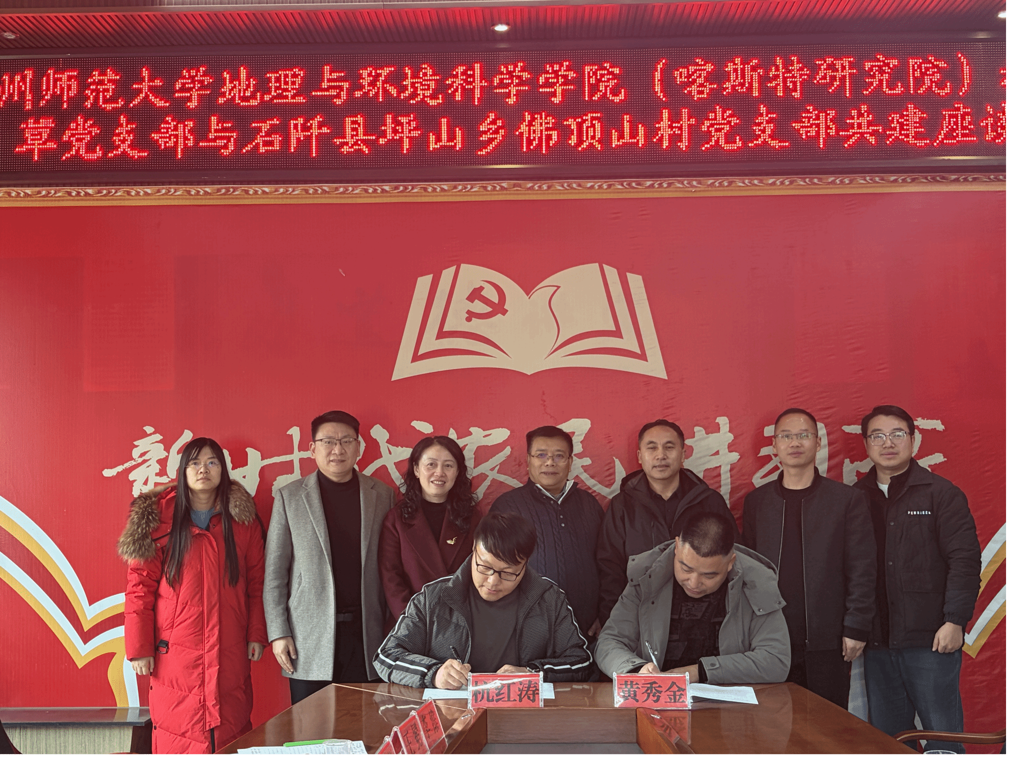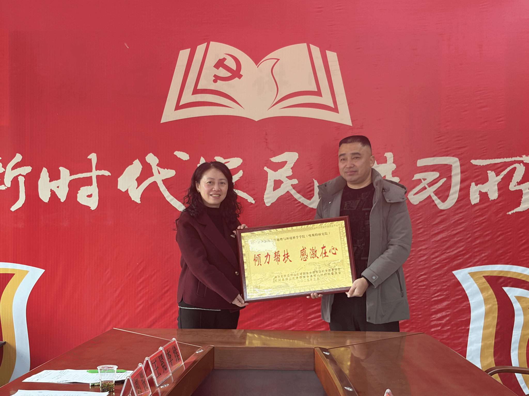 会后,公司教工林草党支部与佛顶山村党支部签署共建协议。佛顶山村向公司赠送感谢语牌,并向上一任驻村干部周亚琦老师赠送锦旗。