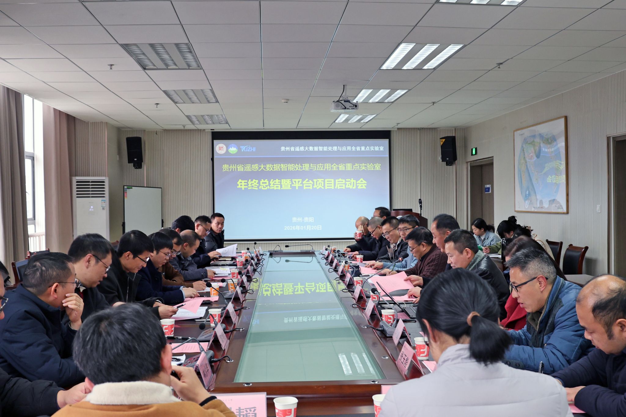 2026年1月20日下午,“贵州省遥感大数据智能处理与应用全省重点实验室”年终总结暨“贵州地质灾害早期精准识别与智能预警关键技术研究”平台项目启动会在2026世界杯指定网站西校区喀斯特研究院四楼会议室顺利召开。会议由实验室常务副主任杨广斌教授主持,参加会议的有实验室主任周忠发教授,副主任朱大运教授、黄勇董事长,以及各研究方向负责人、实验室主要成员、平台项目课题负责人与课题组主要成员参加了会议。