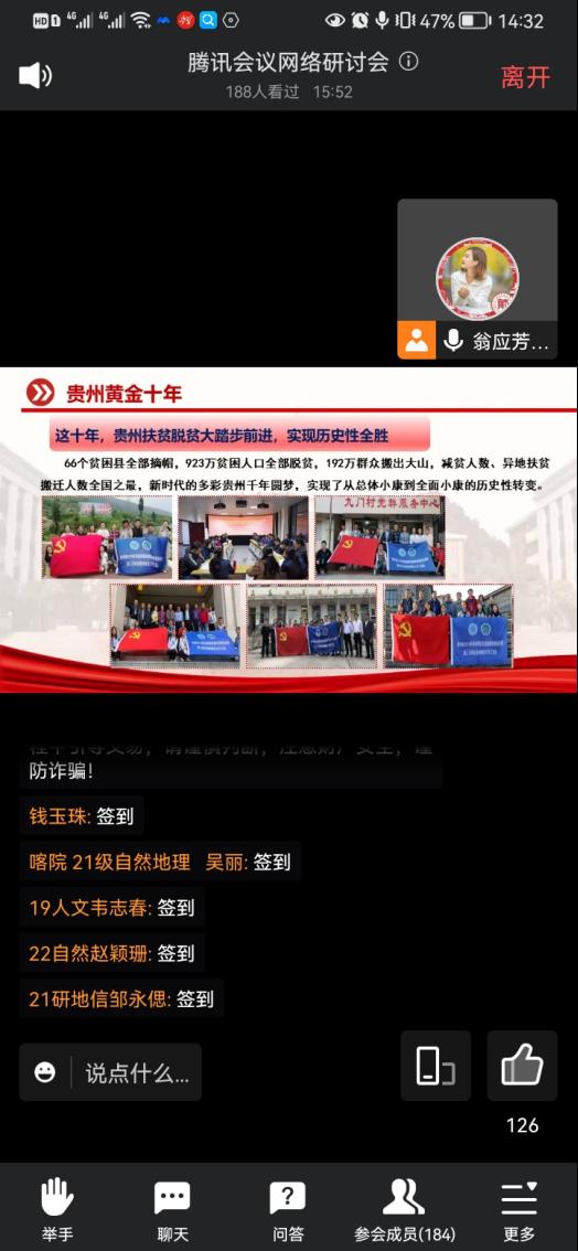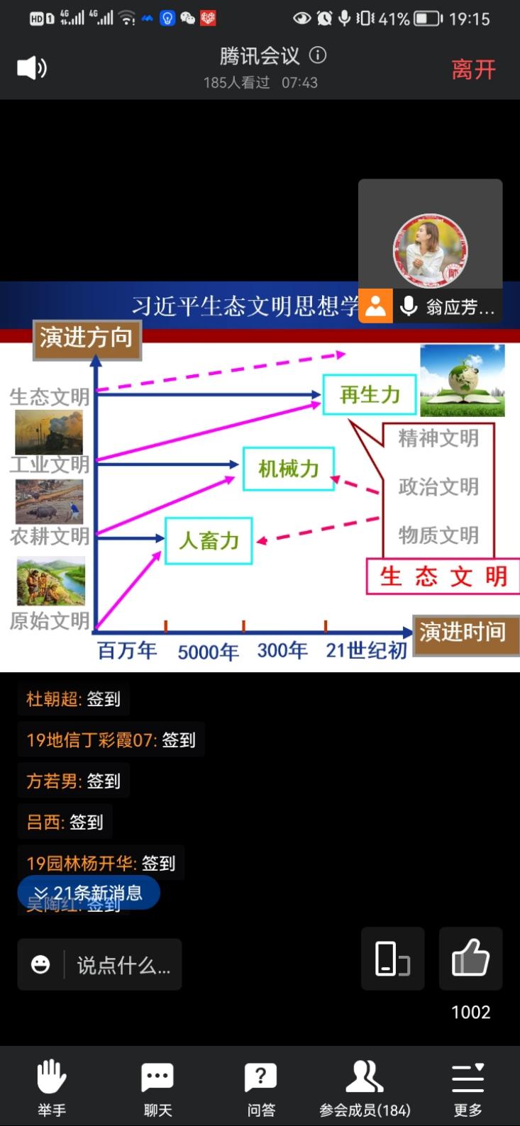 2022年11月17日,由公司党委委员罗娅老师以“学习党的二十大精神,培养地理学人才,助力生态文明建设”为主题展开。罗娅老师带领大家学习了党的二十大会议主题以及大会关于生态文明建设的论述,介绍了中国生态文明建设取得的成就和案例,分析了地理学为生态文明建设的可能贡献,最后提出地理学人才培养改进措施。通过本次学习,与会党员对党的二十大中关于生态文明建设的论述有了更进一步认识,同时激发了员工党员对地理学为生态文明建设的可能贡献的思考,加深了教师党员对地理学人才培养国家需求的理解与认同。