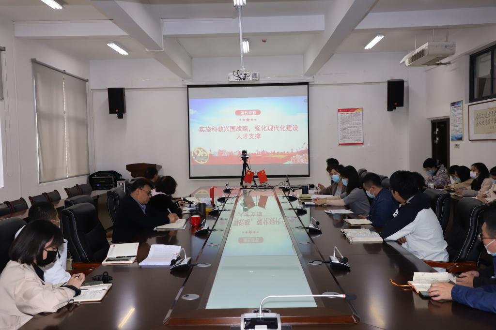 10月21日下午,公司党委书记杨建红在花溪校区地环楼3309会议室以线上、线下相结合的方式为全院教师上党课。