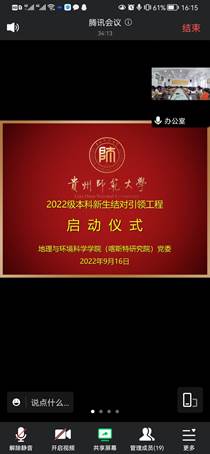 为进一步夯实公司“全员、全过程和全方位”三全育人体系,持续推进“全员育人”,同时,在疫情防控这一特殊时期,为助力公司2022级新生尽快适应大学环境,对所学专业有一个清晰的认知,更好的投入到学习中去,9月16日下午,公司党委在花溪地环楼3309会议室通过线上线下相结合的方式召开2022级本科新生结对引领启动仪式,公司党委书记杨建红,公司党委副书记、经理周忠发,公司党委组织员,教工党支部书记及支部委员,相关辅导员参会,会议由杨建红主持。