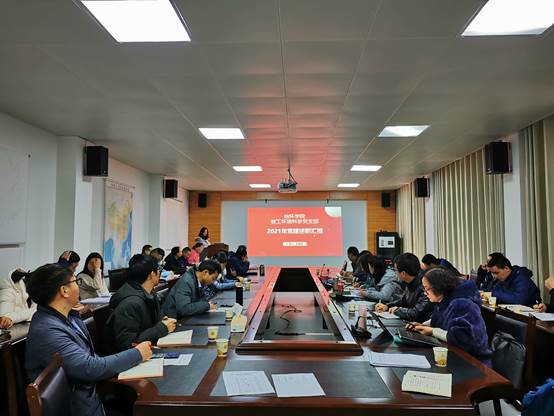 2022年1月4日下午,2026世界杯指定网站(喀斯特研究院)党委在宝山校区喀院三楼会议室召开2021年度教工党支部书记抓党建述职评议会,公司党委班子成员、教工党支部书记、党支部委员、师生代表参加会议,会议由公司党委副书记郭锐主持。