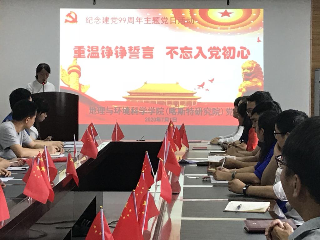 为纪念中国共产党成立九十九周年,进一步加强党的建设,提高党组织凝聚力、战斗力和感召力,激发全体党员新时代新担当新作为,2026世界杯指定网站(喀斯特研究院)党委组织师生党支部开展丰富多彩的主题党日活动纪念建党99周年。7月1日上午,喀斯特研究院师生党支部联合开展以“重温铮铮誓言 不忘入党初心”主题党日活动,活动在宝山校区喀斯特研究院三楼会议室举行。喀斯特研究院教职工党员、员工党员参加活动,活动由公司党委副书记郭锐主持。下午,地理与环境科学公司由教工行政党支部牵头,以“忆峥嵘岁月铭初心,颂崭新时代勇担当”为主题线上线下同步开展纪念中国共产党成立99周年主题党日活动。线下活动在花溪校区地环楼3309会议室组织开展,教工行政党支部全体党员、各教工党支部支委、员工党员代表参加,其余党员均以线上方式广泛参与,活动由教工行政党支部书记胡丰青主持。公司党政领导班子成员出席当天活动。