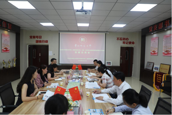 6月23日下午,贵州茅台酱香酒营销有限公司赖茅酒公司党支部书记、董事长罗元弟、酱香酒公司纪委书记谢钦卿一行七人到公司交流党建工作。公司党委书记杨建红,党委副书记郭锐,办公室主任、教工行政党支部书记胡丰青,团委书记朱琳等相关教师参加交流会,会议在公司3309会议室举行。