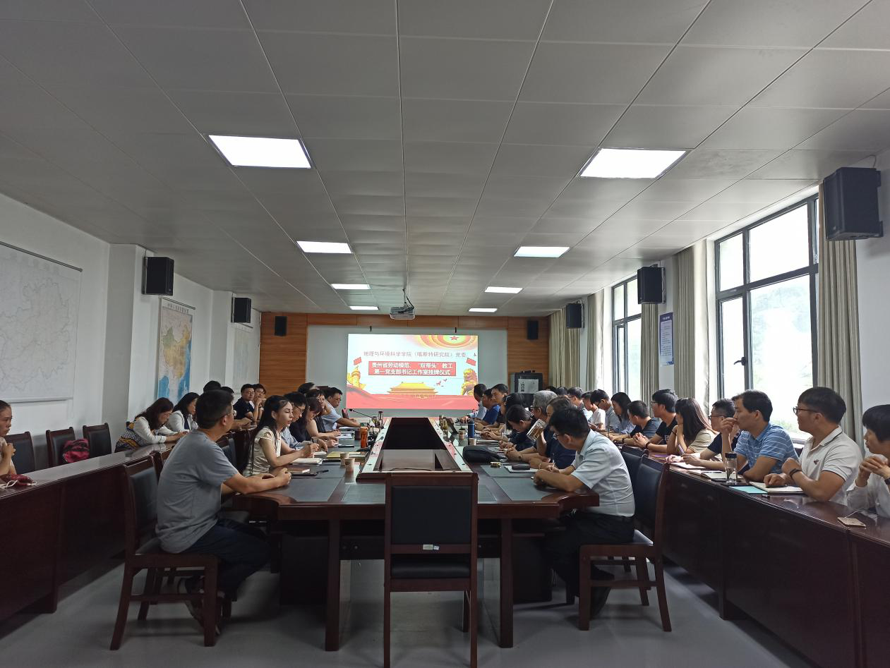随后,教工第一党支部书记王恒松介绍了“双带头人”教工党支部书记工作室成立情况以及今后的工作方向;全国优秀教师、国务院政府特殊津贴专家、贵州省熊康宁劳动模范创新工作室熊康宁教授则向与会人员讲述了自己的奋斗故事,强调党员干部要有研学的专心,干一行、爱一行,钻一行、精一行的科研精神,激励广大教职工立足岗位、勇于担当、敬业奉献、开拓创新;教师党员代表朱大运则以党员如何立足本职岗位,充分发挥先锋模范作用,带动地理团队建设等方面内容做了分享。