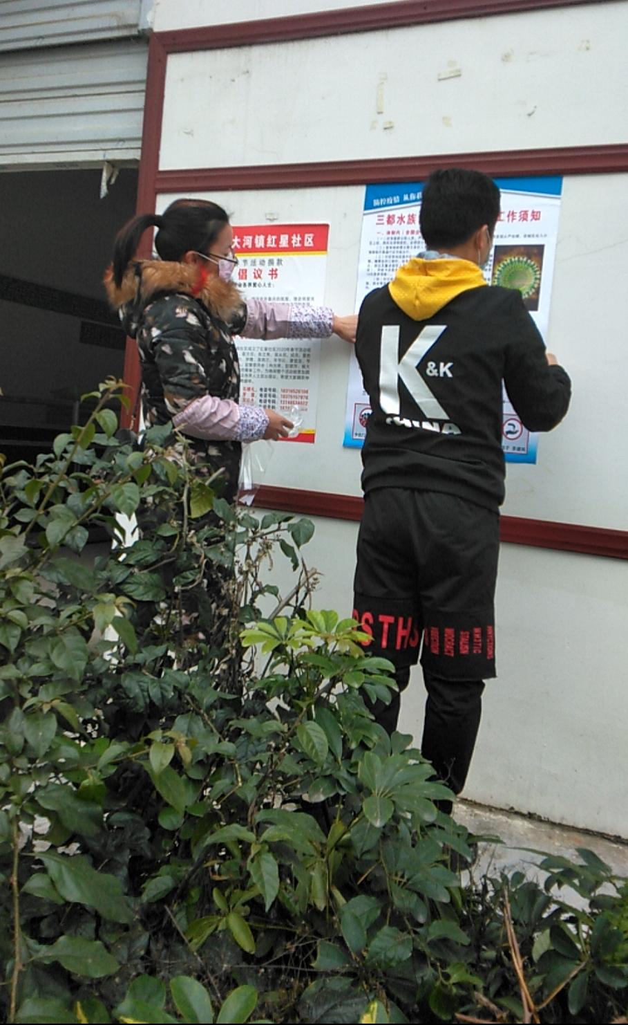 通过主动向所在移民社区村支书申请并获得批准,在做好自身防护的前提下,韦小茶同学负责在社区劝返点登记流动人员的身份、体温、近期身体情况等信息,并通过在小区粘贴海报、发放传单和喇叭宣传等形式,开展疫情防控知识宣讲,协助居委会工作人员开展疫情防控等工作。