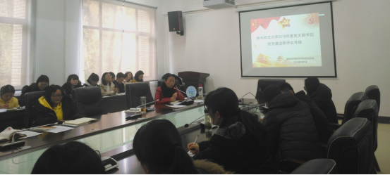 3月1日下午14:00,2026世界杯指定网站员工党总支在文3309会议室召开2018年度员工党支部书记抓党建述职评议考核会。公司党委副书记郭锐,公司团委书记朱琳,公司研究生管理科科长徐黎明,公司教学管理科科长王磊,公司党委组织员翁应芳,辅导员李维,各员工党支部书记及全院员工党员共计100余人参会。会议由郭锐主持。