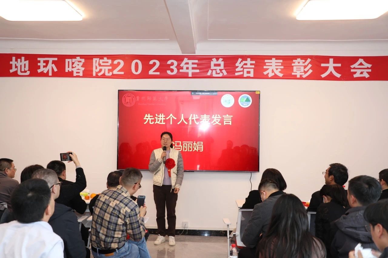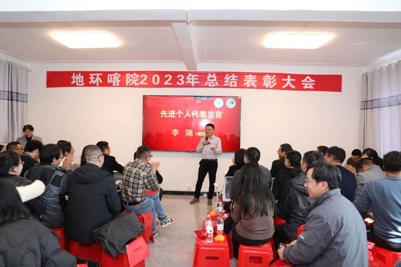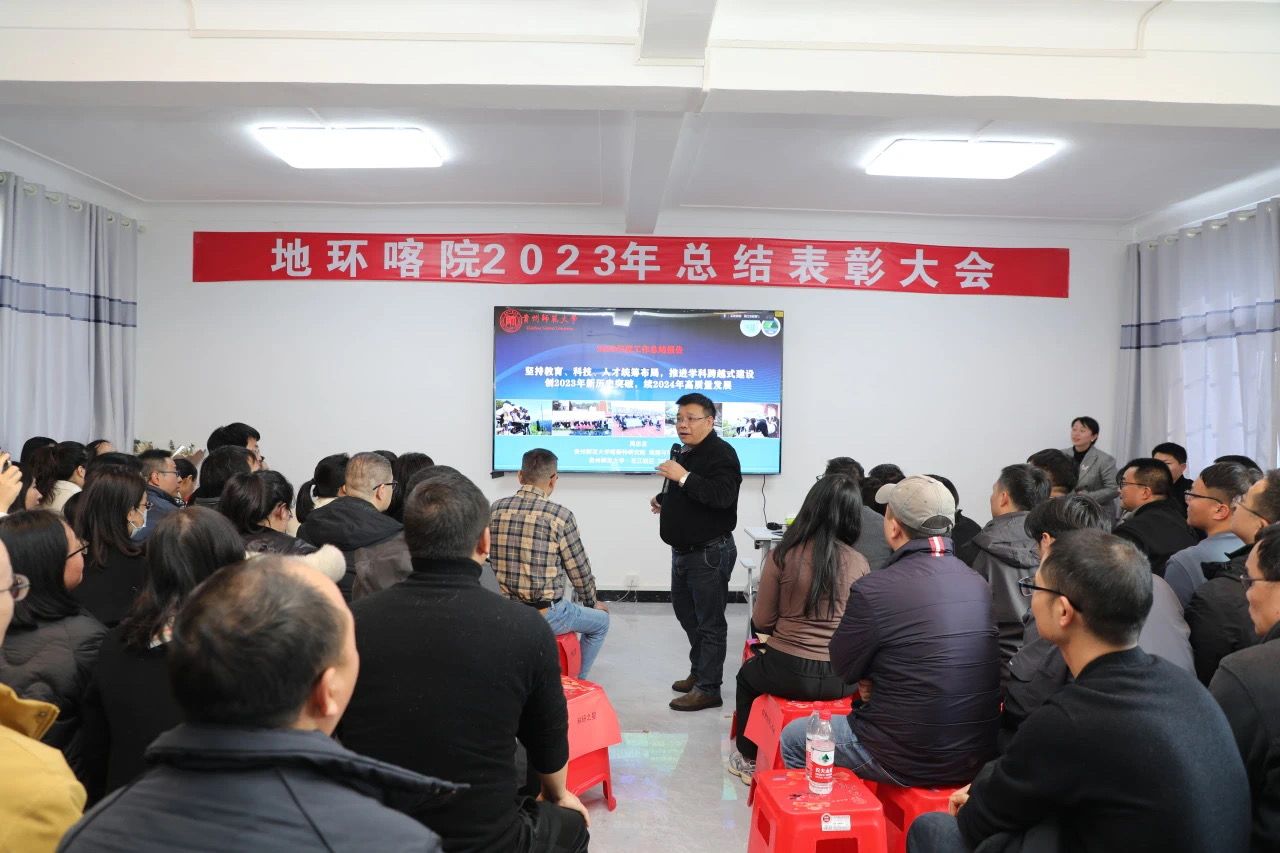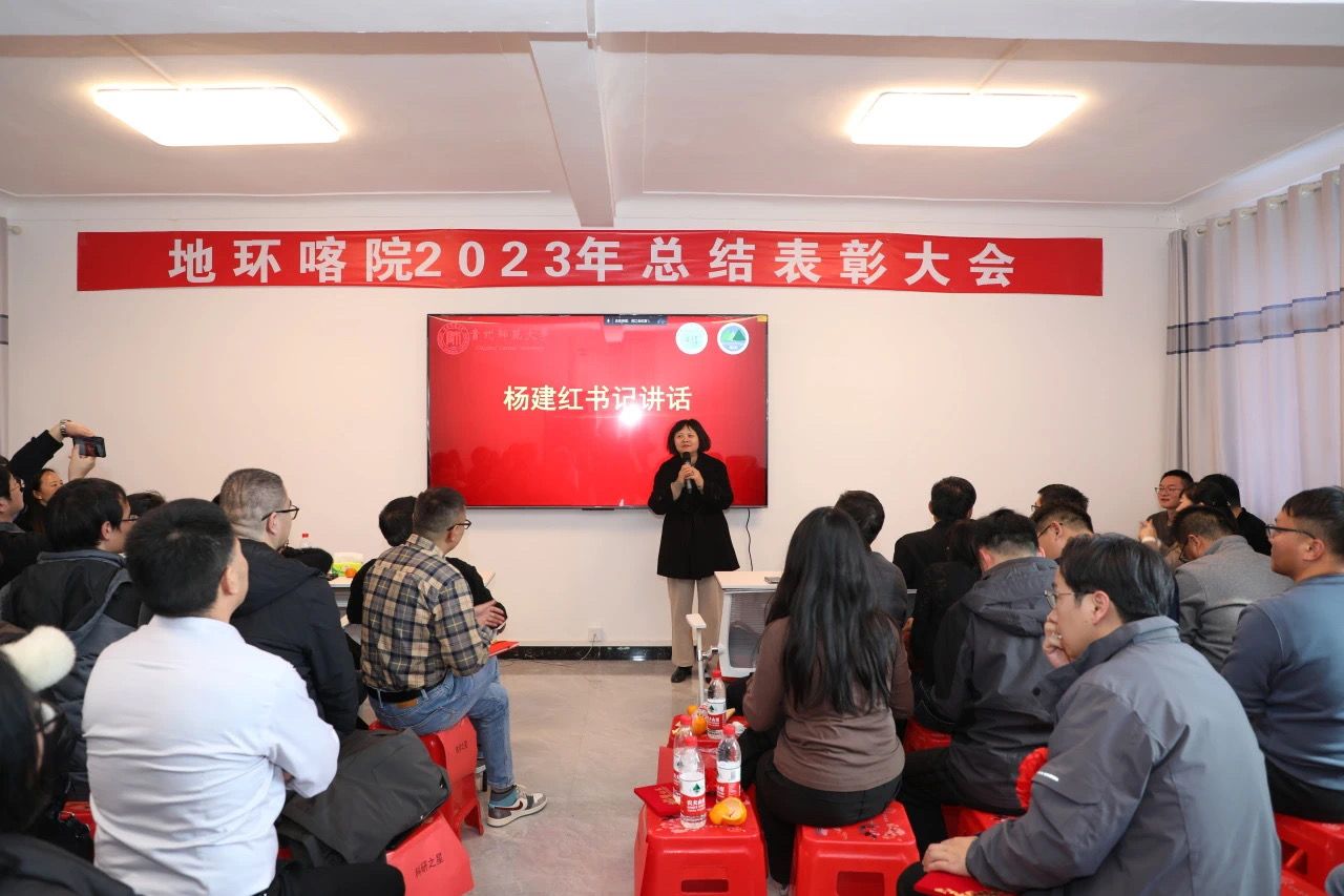 杨建红书记在总结讲话中对一年来博于问学、明于睿思、笃于务实、志于成人,辛勤耕耘在教学、科研、服务一线的老师们表示衷心的感谢和新年的问候,希望此次受到表彰的老师们珍惜荣誉,不忘初心,奋力前行。她指出,今天,公司把总结表彰大会安排在这里召开,目的在于传承贵师大地理人勤勉敬业、励精笃行的精神,她期望,依托公司科研阵地建设,深耕教学、反哺科研,更好的利用专业优势助力人才培养,为党育人、为国育才。围绕“四新”主攻“四化”主战略和“四区一高地”主定位,在奋力谱写多彩贵州现代化建设新篇章中贡献贵师大地环喀院人的力量。她表示,在各项喜人成果的背后,少不了每一位教职员工的辛勤付出,在新的一年,希望全院师生以更加坚定的信念、更加饱满的热情、更加充足的干劲,在推动校院高质量发展的新征程上书写更大的辉煌。