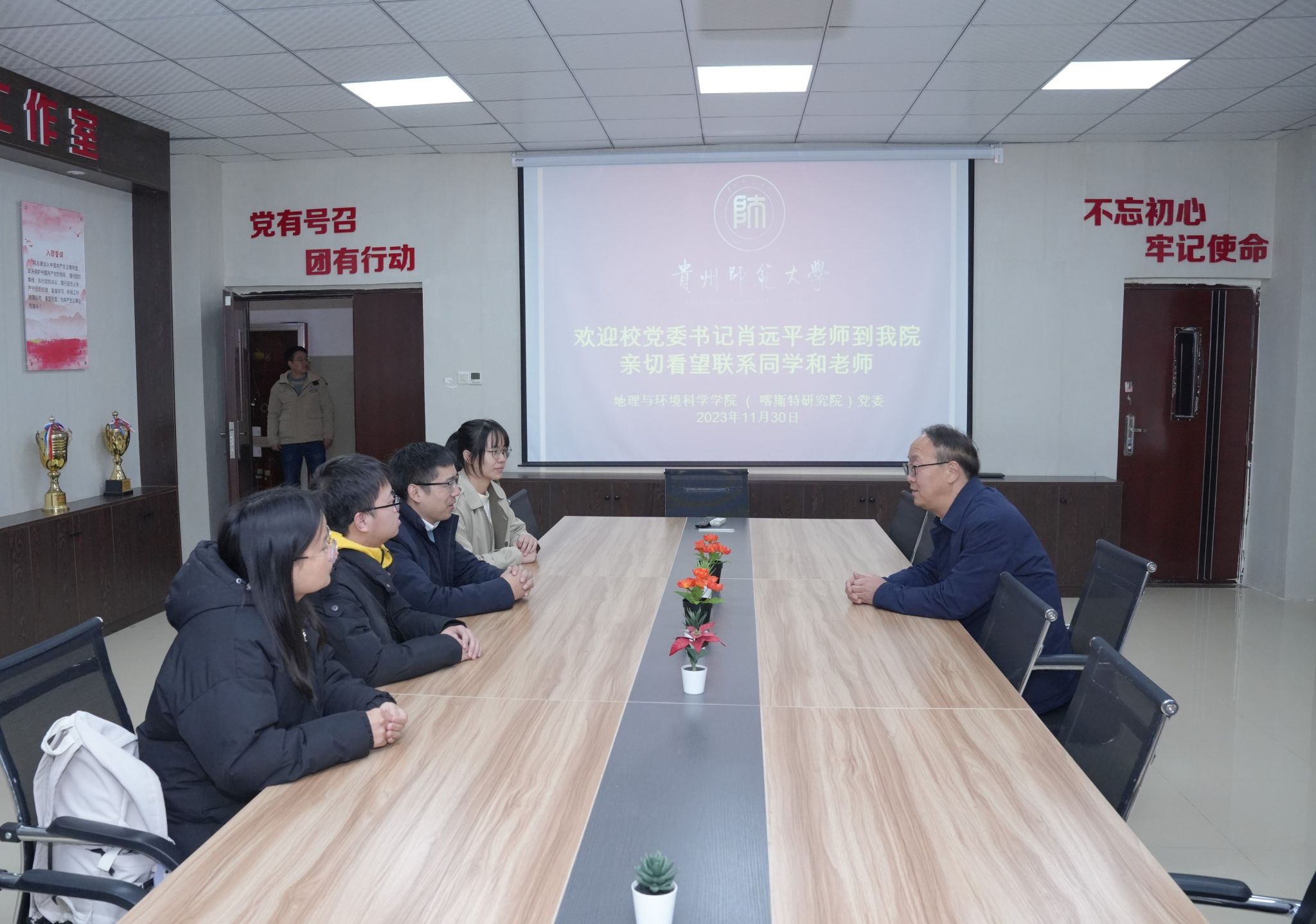 11月30日上午,公司党委书记肖远平到公司花溪校区东区看望慰问所联系的辅导员、班级和员工个人,并与师生亲切座谈。