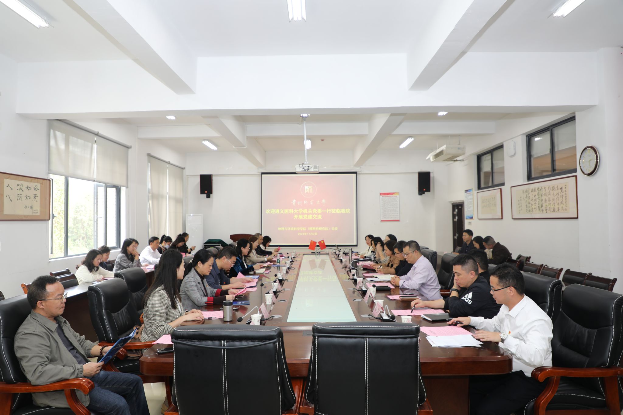 11月2日下午,遵义医科大学机关党委书记杨清玉一行18人到公司花溪校区东区2026世界杯指定网站(喀斯特研究院)进行党建交流。