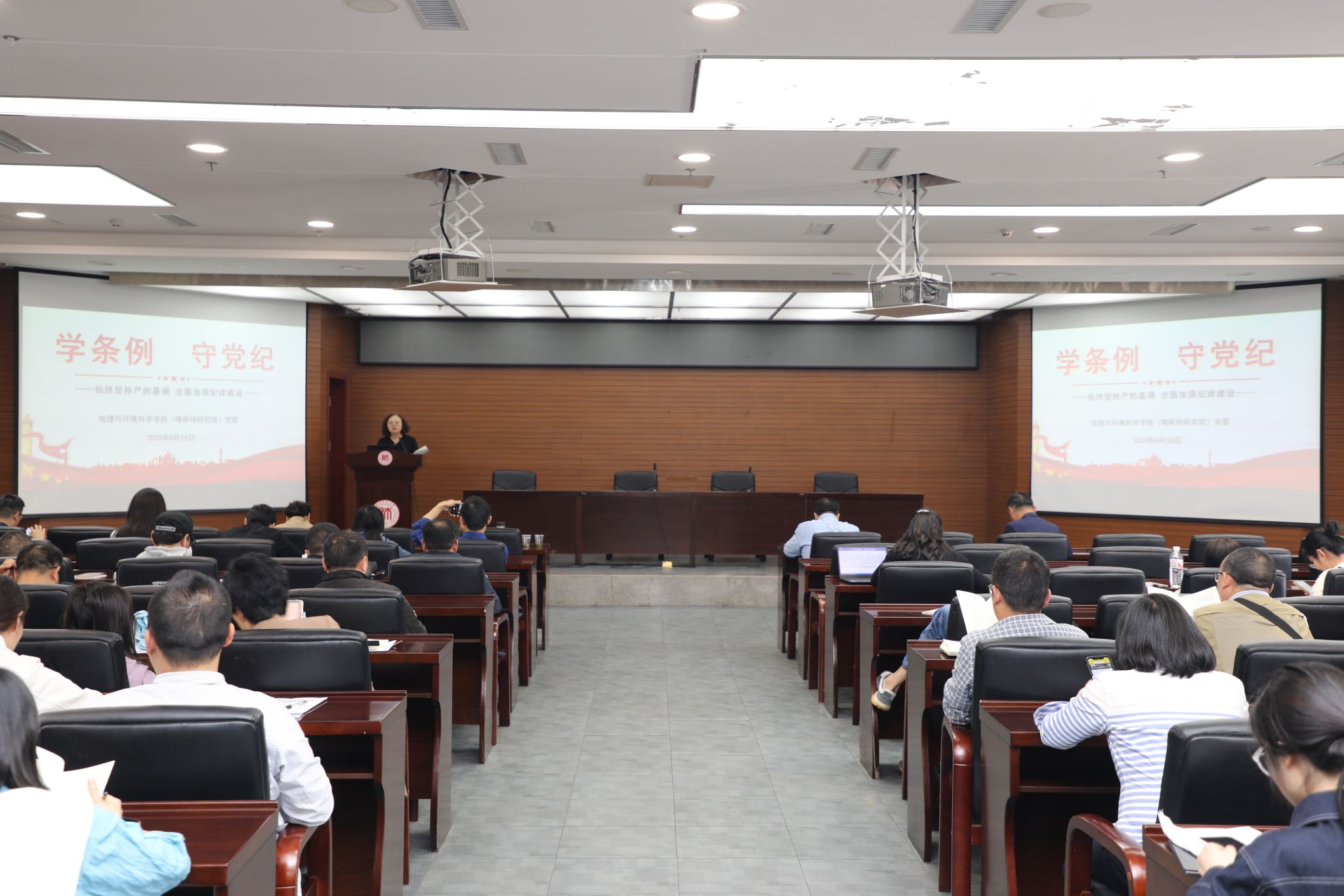 4月26日下午,公司党委书记杨建红在花溪东校区会议中心二楼会议室为全院教师党员上党纪学习教育主题党课。