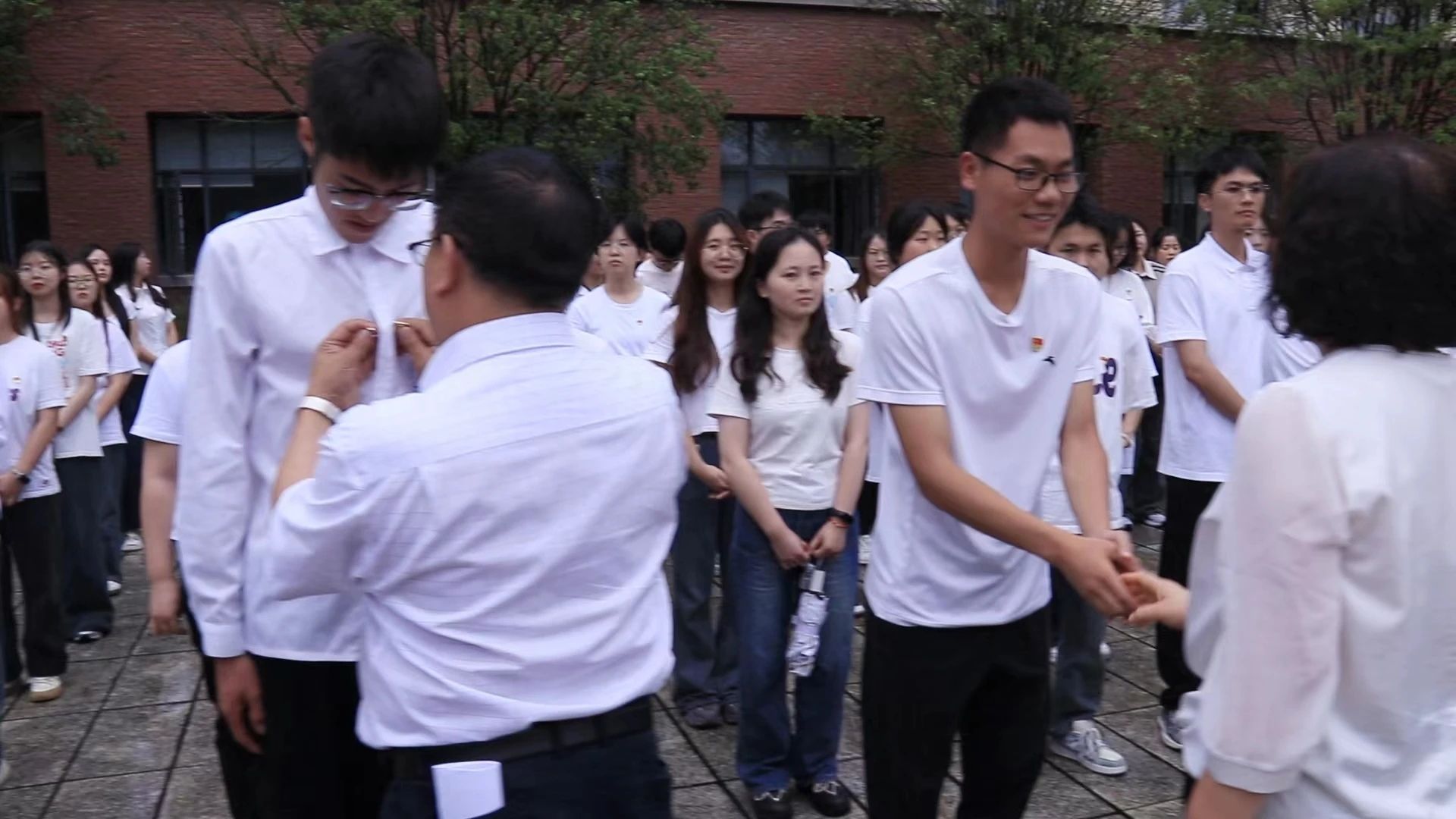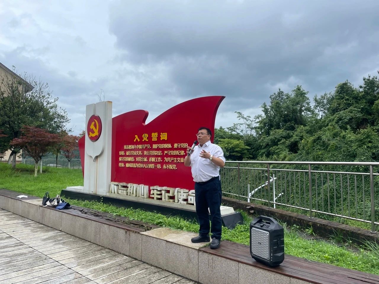 在党建广场宣誓墙前,由公司党委正处级组织员杨建红领誓,全体师生党员开展了“新党员入党宣誓暨老党员重温入党誓词”活动,随后,教师党员为新党员佩戴党徽,勉励他们坚定理想信念,牢记初心使命。