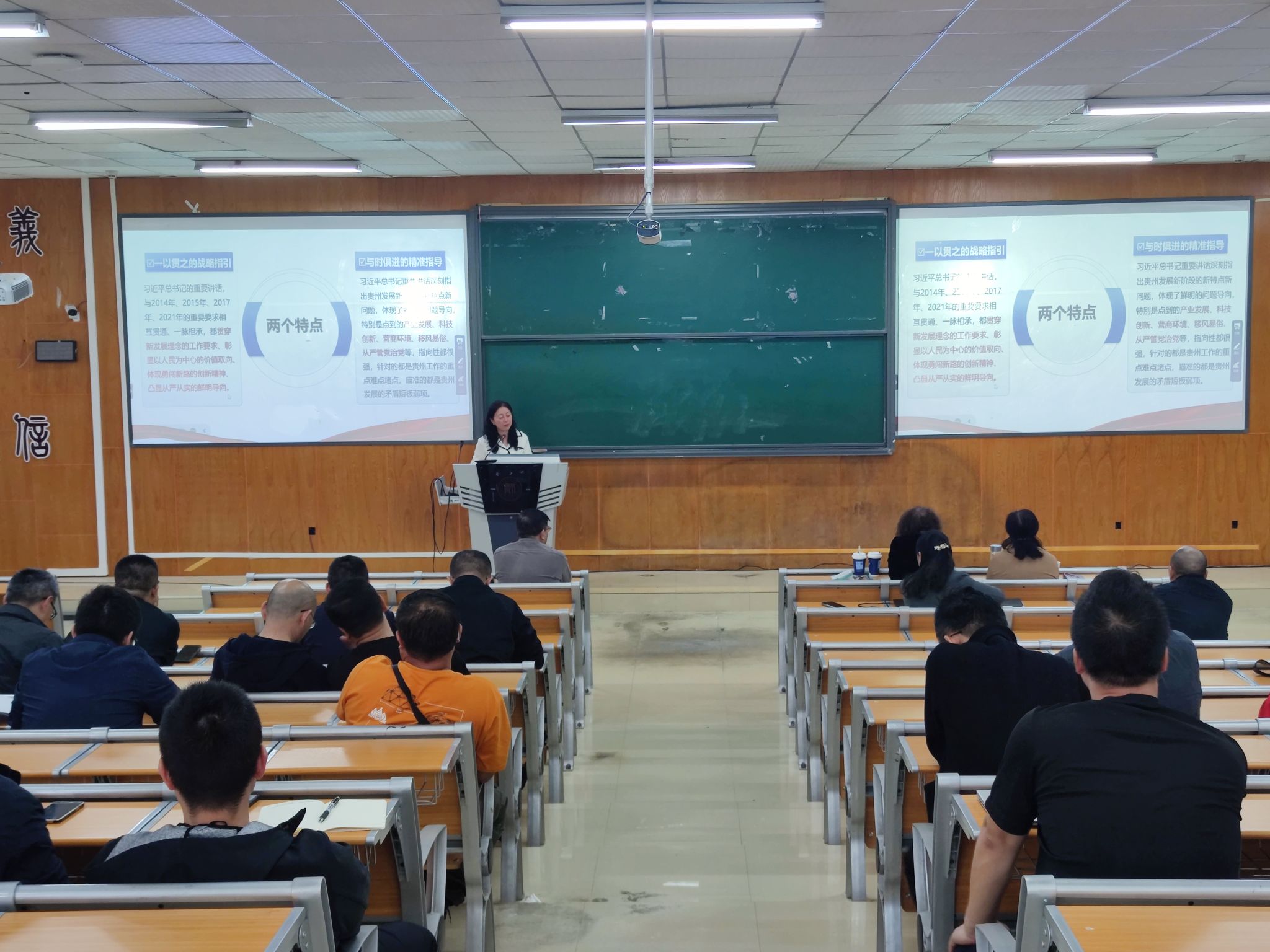 两位老师以“深入学习贯彻习近平总书记在贵州考察时的重要讲话精神”为主题,从“一以贯之的战略指引,与时俱进的精准指导”的两个特点以及“习近平总书记对贵州发展的总体要求,习近平总书记关于坚定不移走高质量发展之路的重要指示精神,习近平总书记关于加强文化建设和文明新风培育的重要指示精神”等七个重点,将理论结合实际,联系公司跨越式高质量发展情况,带领大家学习领会习近平总书记重要讲话的丰富内涵、精神实质和实践要求。