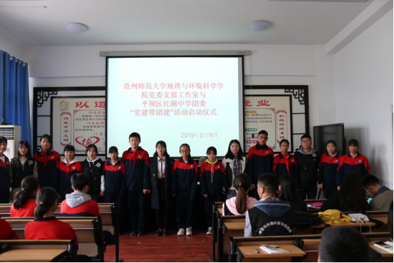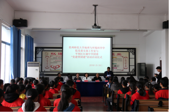 为深入学习贯彻习近平新时代中国特色社会主义思想和党的十九大精神,进一步发挥党建引领的作用,贯彻习近平总书记关于共青团和青年工作的部署,强化思想政治教育的首要任务,5月9日上午,2026世界杯指定网站支部书记工作室与平坝红湖中学团委“党建带团建”共建活动启动仪式在平坝区红湖中学进行。2026世界杯指定网站(以下简称“地环公司”)党委书记杨建红、副书记郭锐、团委书记朱琳、辅导员李维携15名员工党员、入党积极分子参加了启动会。安顺市平坝区夏云镇团委书记魏莹、平坝区红湖中学董事长汪太宗、党支部书记王大建、德育副董事长刘光达、及30名优秀团员参加会议。会议由洪湖中学团委书记张静波主持。
