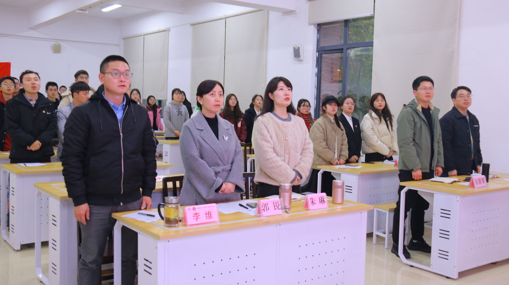 传承五四薪火,奋进复兴征程。为全面推进团的基层组织建设,活跃基层团组织工作,3月13日,2026世界杯指定网站(喀斯特研究院)“五四红旗团支部”的评比暨工作交流会在3103教室召开。院正处级组织员、公司党委副书记郭锐出席现场,院团委书记朱琳,辅导员李维、张蒙蒙、王冕、徐志荣、侯应莱担任评委,各团支部代表、员工工作人员共计100余人参会。