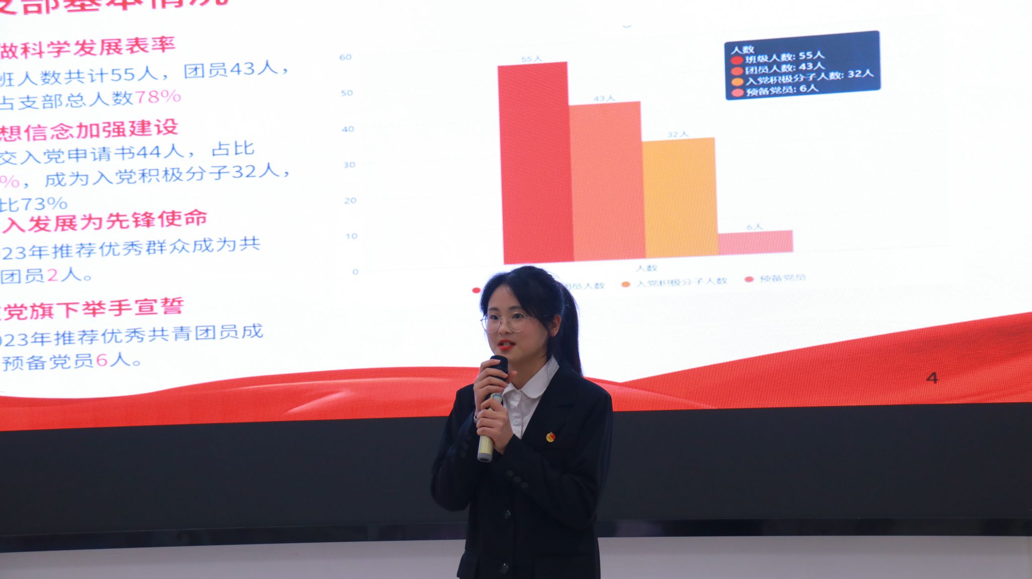 会议在全体团员青年共同奏唱中国共青团团歌《光荣啊,中国共青团》后正式拉开序幕。各班团支部以PPT形式,分别从团支部工作特色、组织建设、思想建设、工作实效、文化宣传等方面对过去一年团支部工作进行详实汇报。