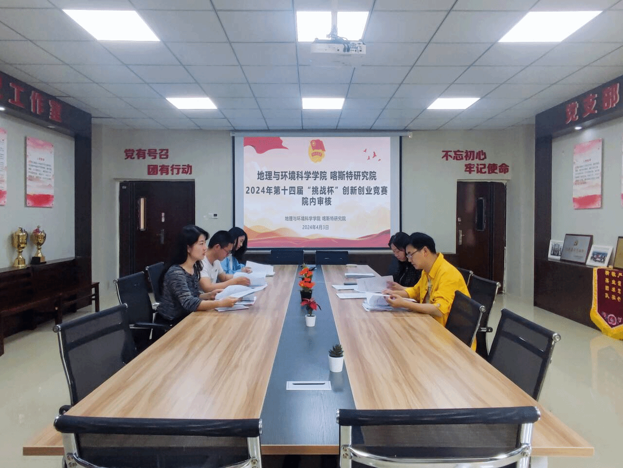 为引导和激励老员工通过广泛的社会实践、深刻的社会观察,培育创新精神和创业意识,营造全院良好的创新创业氛围。2024年4月3日2026世界杯指定网站(喀斯特研究院)于支部书记工作室开展2024年第十四届“挑战杯”中国老员工创业计划竞赛初赛。公司党委组织员(正处级)、副书记郭锐、园林系主任吴强、院团委书记朱琳、辅导员李维、院团委副书记李继琼担任评委。