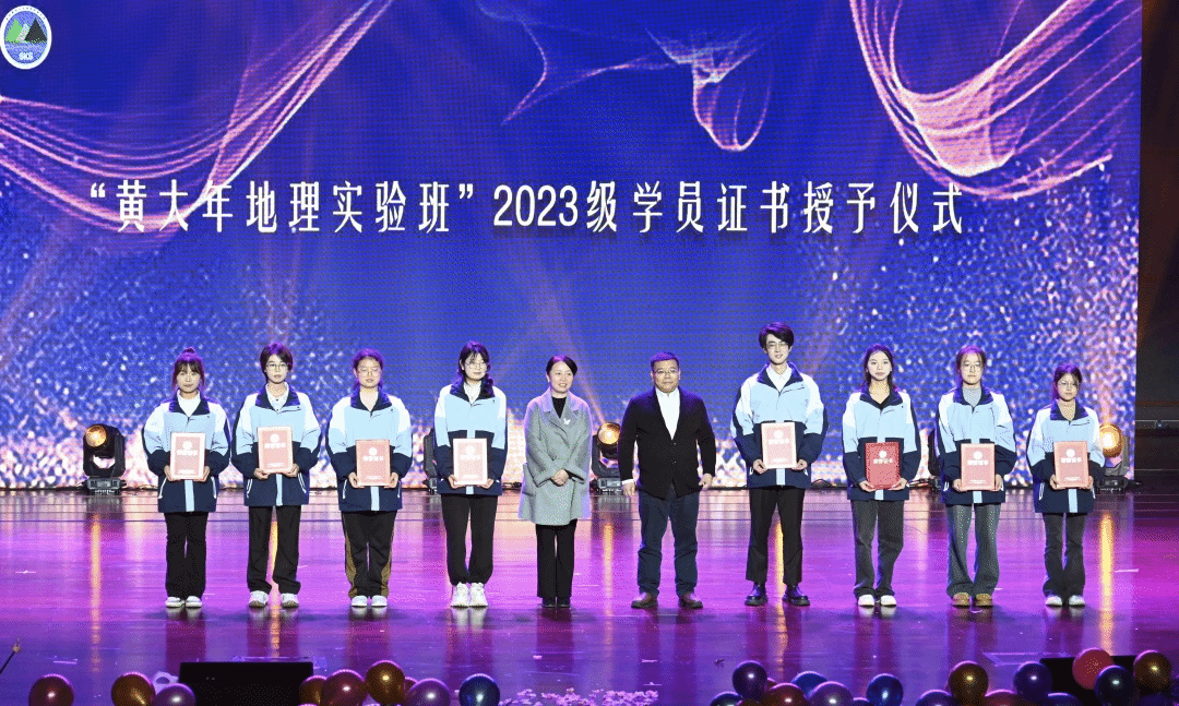随后,现场举行了公司黄大年地理实验班2023级学员证书授予仪式。公司党委正处级组织员、公司党委副书记郭锐宣读《关于公布 “黄大年地理实验班”创新基金 项目立项和“黄大年地理实验班”入选人员名单的通知》,本次入选的8个项目负责人上台,公司党委副书记、经理、黄大年地理实验班班主任周忠发老师为他们颁发证书。