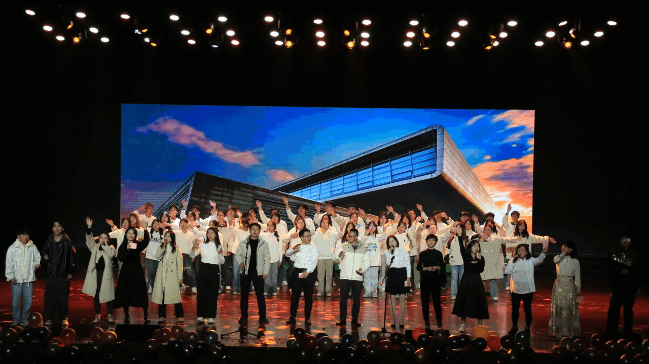 最后,晚会在专兼职辅导员与各团学组织代表合唱《我爱你中国》的激昂歌声中圆满落幕。歌声萦绕礼堂上空,回荡出了同学们对祖国的深情以及他们对未来老员工活的无限期待。