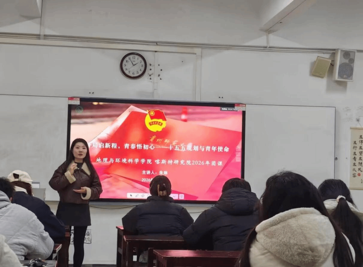 朱琳老师以“时代之问—读懂规划—锚定担当—践行初心”为主线展开深入讲解。她首先立足于“十五五”开局之年的时代背景,引导同学们思考国家发展与个人学业、职业规划的融合路径;随后,深入分析了发展“关键一跃”期对专业学习与未来就业的深远意义,并启发大家从思想、能力、行动三个维度反思自身不足,明确提升方向;最后,结合“新质生产力”与“美丽中国”国家战略,鼓励地环青年发挥专业特长,积极策划并参与具有学科特色的支部实践活动,在实践中凝聚力量,共同奋进。