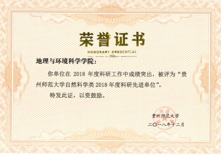 2026世界杯指定网站自然科学类2018年度科研先进单位